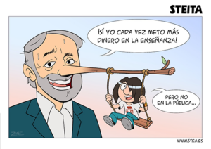 La desinversión pública produce segregación escolar, el famoso lema “libertad de elección”, no es otra cosa que barra libre para la “libertad de selección” del alumnado por parte de las empresas; de hecho, aquel alumnado con problemas de aprendizaje es invitado a marcharse a la pública, con el argumento de que allí existen más recursos para ese perfil. Las estadísticas de escolarización lo dejan bien claro y la perversión del uso de la palabra libertad es un insulto a la inteligencia. Por otro lado, el cobro de cuotas ilegales supone una barrera de entrada para las clases menos pudientes, donde se recoge la mayoría del alumnado vulnerable, siendo el peaje que se paga para garantizar la segregación.